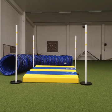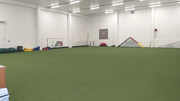Hallen har en stötdämpande matta och på den Jutagrass konstgräsmatta.